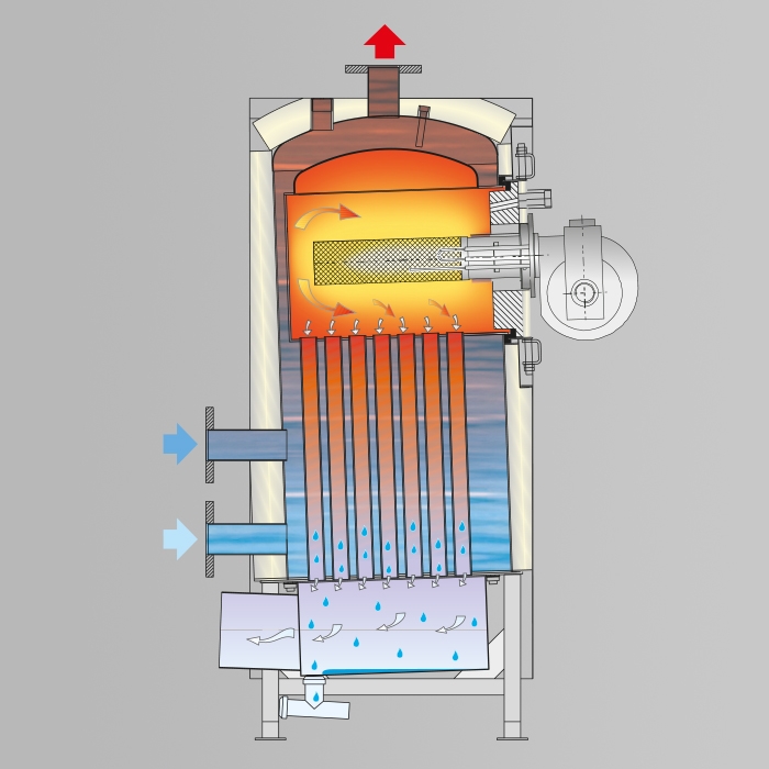 Output from 150 to 350 kW - Large water content, condensing unit, entirely in stainless steel, complete of premix modulating gas burner